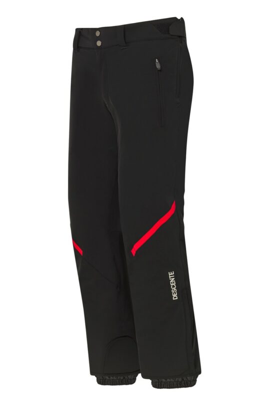 Kalhoty Swiss obléklá švýcarský a španělský národní lyžařský tým a jsou nadesignované tak, aby působily hladce a rovně při natažení přes lyžařskou botu. Kalhoty jsou upravitelné tak, aby vyhovovaly i větším obvodům pasu. Designově jsou sladěny s bundami z materiálu 4Way Stretch. Naprostou volnost pohybu zajišťuje všesměrově elastický svrchní materiál 4Way Stretch s PU membránou Dermizax, doplněný o koncept Descente Motion 3D, který přesně kopíruje chování lidské kůže, stejně jako ona kalhoty nikde zbytečně neodstávají ani netlačí. O tepelný komfort pečuje termoizolační výplň 3M Thinsulate.