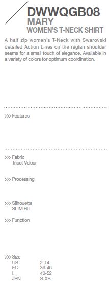 Velmi elegantní, decentní a maximálně pohodlný dámský rolák se zipem u krku užšího střihu. Použitý materiál Tricot Velour je všesměrově elastický, velmi jemný na dotek, výborně transportuje vlhkost a rychle schne. Designově tento rolák oživují drobné stříbrné Swarovski kamínky.