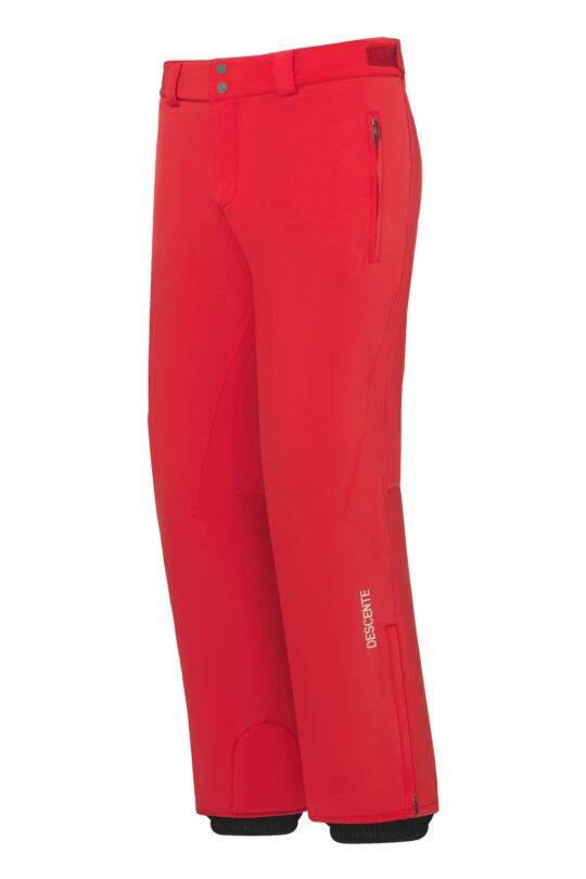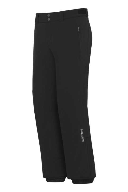 Kalhoty Swiss mají klasický pohodlný tvar body fit. V černé barvě jsou v nabídce ve třech délkách: klasické-R, prodloužené o 5 cm-L a zkrácené o 5 cm-S. Designově jsou sladěny s bundami z materiálu 4Way Stretch. Naprostou volnost pohybu zajišťuje všesměrově elastický svrchní materiál 4way Stretch s PU membránou Dermizax, doplněný o koncept Descente Motion 3D, který přesně kopíruje chování lidské kůže, stejně jako ona kalhoty nikde zbytečně neodstávají ani netlačí. O tepelný komfort pečuje termoizolační výplň Thinsulate a materiál Heat Navi, který dokáže velmi efektivně přeměnit široké spektrum paprsků slunečního záření na teplo. Samozřejmě nechybí funkční detaily, jako jsou odepínací šle, dvě zapínací kapsy, rozpínací spodní části nohavic opatřené 3D ochranou proti proseknutí hranou lyže, snadno ovladatelné stahování v pase a další.