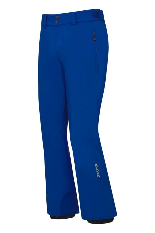 Kalhoty Swiss mají klasický pohodlný tvar body fit. V černé barvě jsou v nabídce ve třech délkách: klasické – R, prodloužené o 5 cm – L a zkrácené o 5 cm – S. Designově jsou sladěny s bundami z materiálu 4Way Stretch. Naprostou volnost pohybu zajišťuje všesměrově elastický svrchní materiál 4way Stretch s PU membránou Dermizax, doplněný o koncept Descente Motion 3D, který přesně kopíruje chování lidské kůže, stejně jako ona kalhoty nikde zbytečně neodstávají ani netlačí. O tepelný komfort pečuje termoizolační výplň Thinsulate a materiál Heat Navi, který dokáže velmi efektivně přeměnit široké spektrum paprsků slunečního záření na teplo. Samozřejmě nechybí funkční detaily, jako jsou odepínací šle, dvě zapínací kapsy, rozpínací spodní části nohavic opatřené 3D ochranou proti proseknutí hranou lyže, snadno ovladatelné stahování v pase a další.