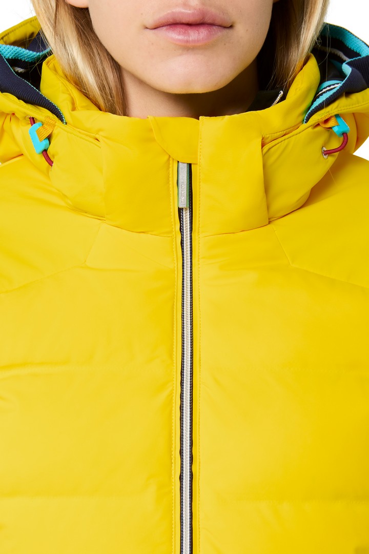 Jeden z Bestsellerů posledních let. Sportovně-elegantní lehká, péřová dámská bunda, která je vhodná nejen na lyžování, ale i na běžné nošení. Přední část bundy je o něco kratší než zadní, což je velice slušivé a umožňuje snadnější pohyb. Nevídanou volnost pohybu zaručuje koncept Descente Motion 3D, který přesně kopíruje chování lidské kůže (stejně jako ona bunda nikde zbytečně neodstává ani netlačí). Ochranu proti nepřízni počasí má na starost svrchní elastický materiál Lightweight Stretch s PU membránou DTL 20K/20K. Tepelný komfort zajišťuje termoizolační výplň z prachového peří a materiál Heat Navi, který přeměňuje široké spektrum paprsků slunečního záření na teplo. Bundě samozřejmě nechybí ani množství velmi praktických detailů, jako např. extra zateplené kapsy, zesílené náplety na krku a koncích rukávů a další.