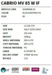 Cabrio MV 85 W s měkčím Flex indexem 85 je nejpohodlnější freeride bota v dámské modelové řadě Cabrio MV ( šířka 101 mm ). Bota kombinuje vynikající sjezdové vlastnosti s pohodlím a snadnou ovladatelností. Lyžařka má přímý kontakt s botou díky vnitřní botičce Instant Fit klasického střihu, která je z 80 % tvarovatelná přesně na nohu, zaručuje vysoký komfort a výkon, ideální pro dlouhé dny lyžování. Inovativní design Dalbello Cabrio kombinuje působivý výkon a kontrolu při sjezdech. Pata je dokonale usazena díky přezce, pod úhlem 45st v bodě otáčení – inovovaný systém zapínání Dynalock. Konstrukce přezky také zjednodušuje manipulaci. Ergonomicky tvarovaný jazyk usnadňuje nástup/výstup z boty.