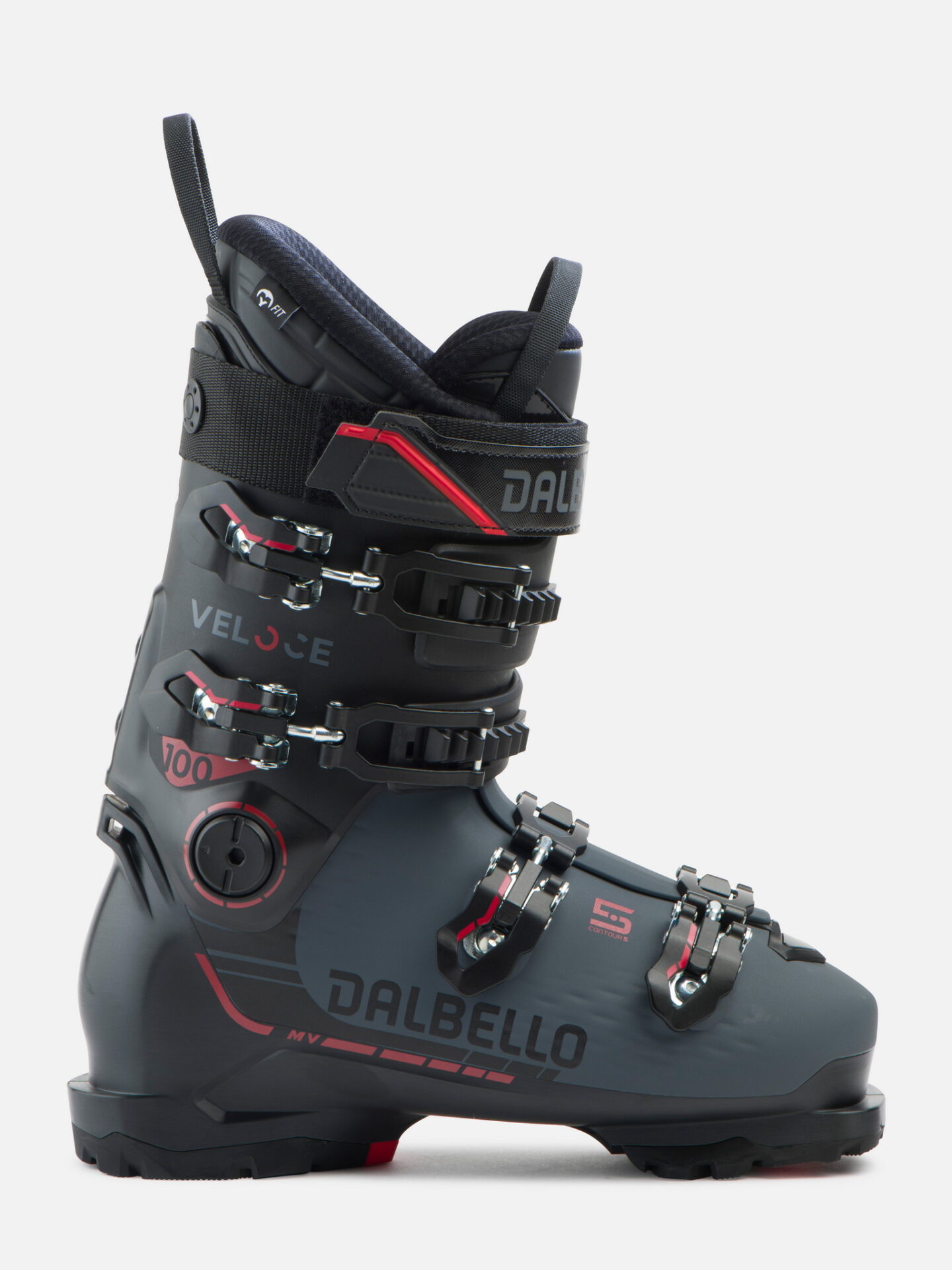Dynamické zatáčení, rychlé tempo provádění obloučků a vysoký stupeň schopnosti ovládat lyže jdou v páru s ideálním dopasováním bot dle potřeb nohou lyžaře. Snadné obouvání i zouvání. Přesně tak lze popsat model lyžařských bot Dalbello VELOCE 100 MV. Horní část skeletu boty je díky dvojitému vstřikování materiálu při výrobě poněkud měkčí, než zpevněná dolní část. To se podepisuje příznivě na obouvání a umožňuje přitom precizní a dynamické ovládání lyží při sjezdu. Díky komínu boty Hyperlight s doplňkovým suchým zipem a optimálně dopasovanému flexu budou chodidla držena ve stabilní pozici a přenos řídících sil na lyže bude efektivní záležitostí. Lyžaře čeká příjemná a spíše sportovní jízda na sněhu. Přezky lze snadno dopínat tak, aby se tlak rozprostíral rovnoměrně na celé chodidlo a lýtko. Sportovní vnitřní bota pevně obepíná patu, drží ji na svém místě a vyznačuje se dobrou tepelnou izolací i za mrazivých zimních dnů. Díky technologii MyFit Program je možné upravovat vnější i vnitřní botu podle potřeb chodidla. Jako standard je namontována podrážka GripWalk, která usnadňuje chození po kluzkém namrzlém povrchu.
