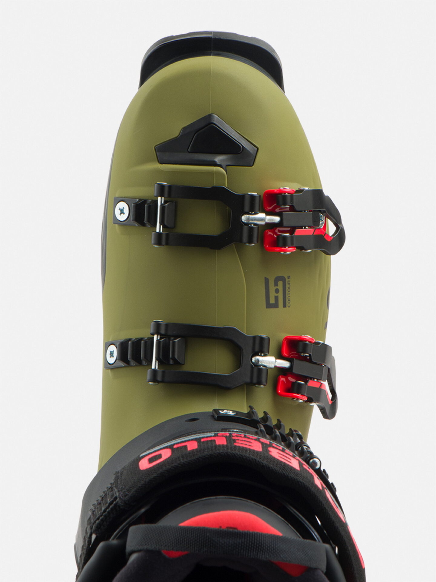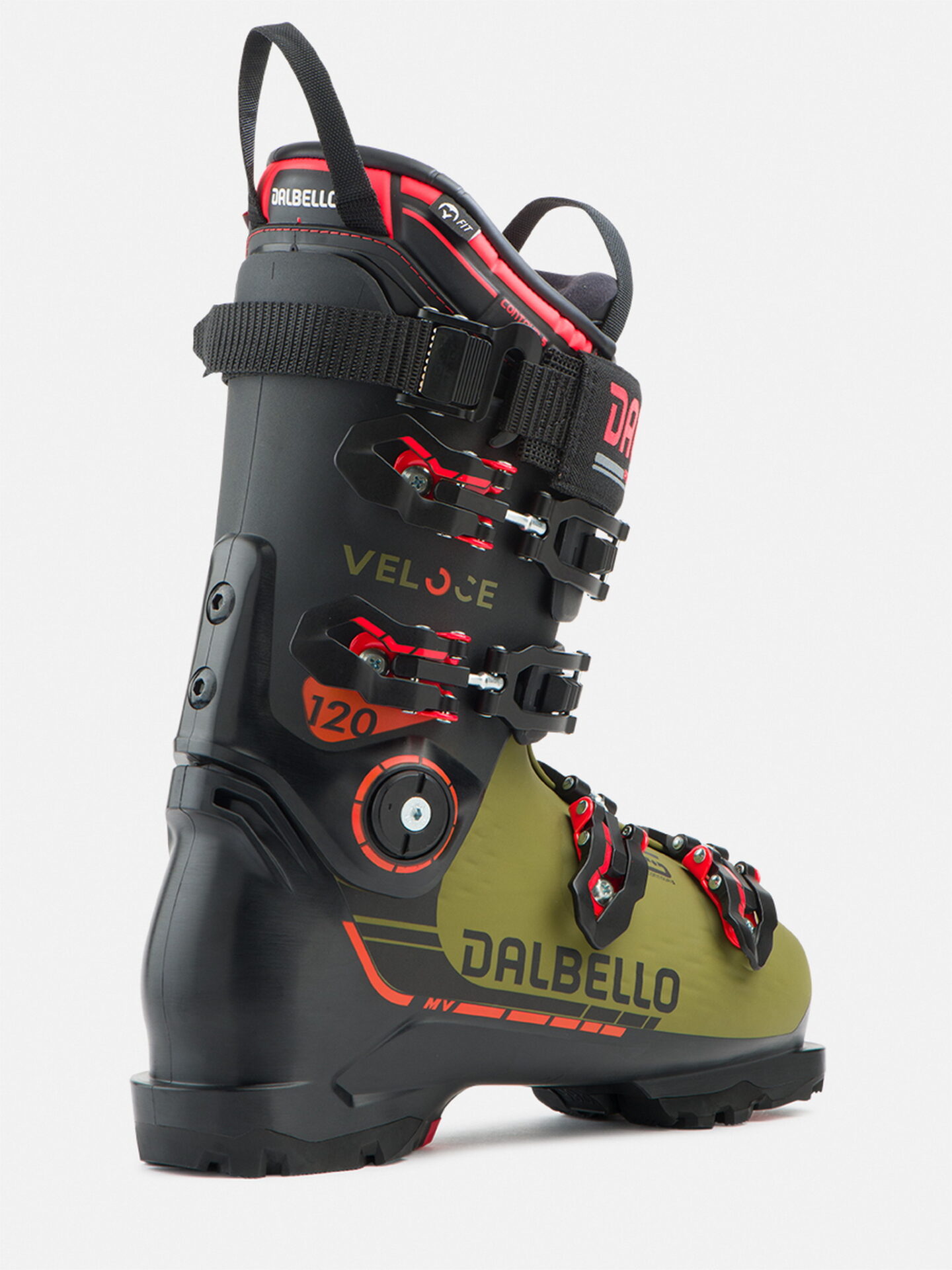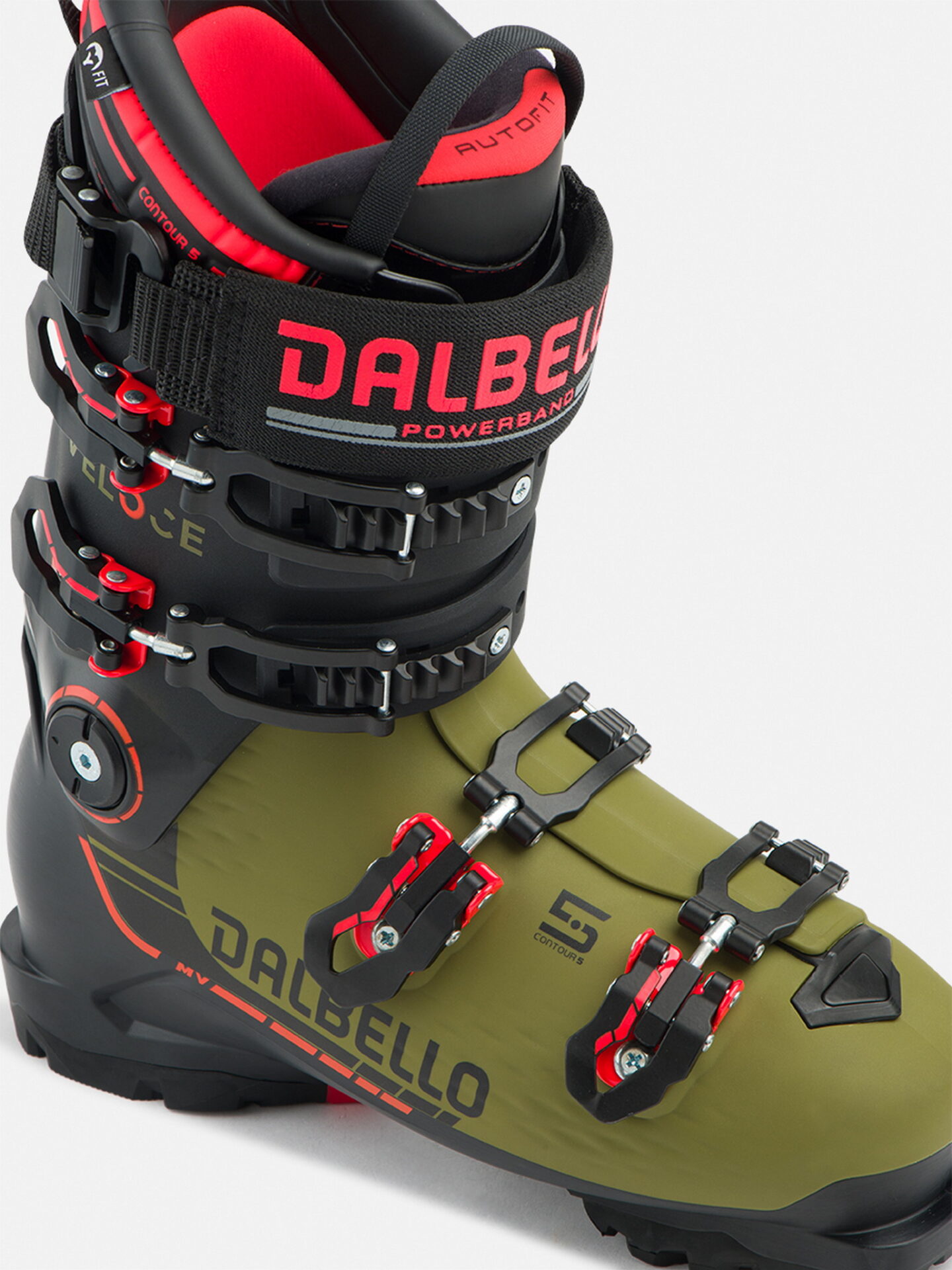 Společnost Dalbello nabídkou modelu lyžáků VELOCE 120 MV cílí na všechny milovníky lyžování, kteří na sjezdovkách touží po rychlém jízdním tempu a precizně provedených obloučcích. Boty nabízejí bezprostřední přenost řídících sil na lyži, vylepšují úroveň kontroly lyžaře nad samotným sjezdem a vedle toho se budou nosit pohodlně po celý den na sněhu. Inovativní konstrukce Overlap s dvojitě vstřikovaným materiálem při výrobě skeletu, komín boty z polyurethanu, vhodného pro závodní modely lyžařských bot a široký pásek Power Strap napomáhají za všech okolností jízdě vpřed v předklonu. Díky technologii Contour 5 se skelet i vnitřní bota precizně dopasují v pěti místech ke tvaru chodidla lyžaře. Přizpůsobený tvar nebude v žádném místě tlačit. Pokud se taková potřeba objeví, bude možné podle individuálních potřeb upravit také svrchní skelet boty. To se týká také destičky na podrážce, jejíž úhel sklonu lze upravovat. Jazyk s polštářkem Autofit Memory omezuje na minimum tlak na holeň, což je při celodenním nošení lyžáků velmi důležité. Anatomické tvarování a částečná výložka ve vnitřní botě Contour 5 IF PRO 120 umožňuje pevnější držení paty a rovnoměrné rozložení hmotnosti a tlaku. Prvotřídní zateplující vrstva PrimaLoft ve vnitřní botě a výložce a tepelně spájené švy navyšují tepelně-izolační vlastnosti lyžáků i za mrazivých dnů. Díky technologii MyFit Program je možné upravovat vnější i vnitřní botu podle potřeb chodidla. Předem zamontované podrážky GripWalk usnadňují chození po namrzlém povrchu a výrazně snižují riziko uklouznutí.