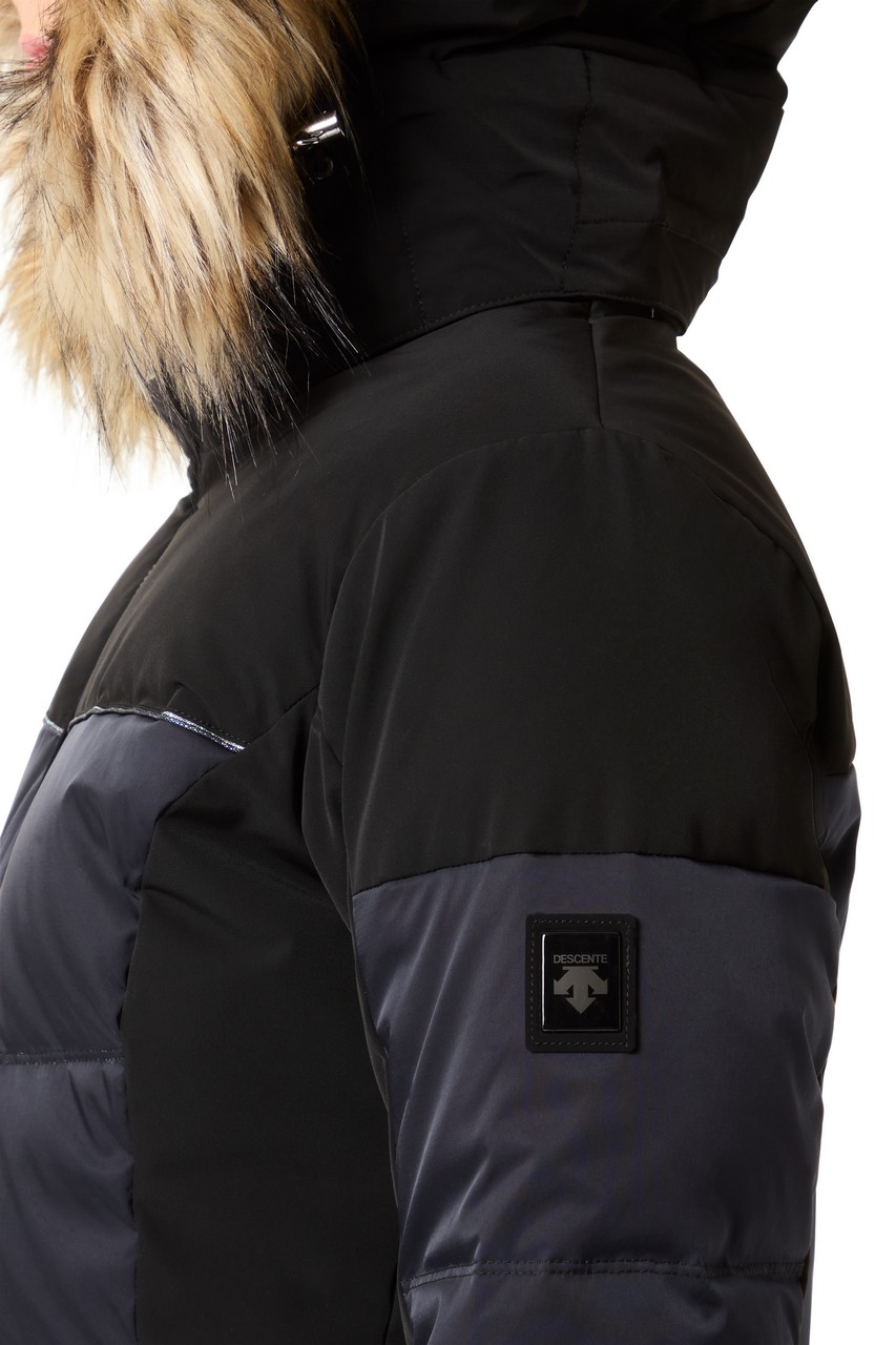 Na této elegantní sportovní bundě s logem na rukávech jsou atraktivní detaily vytvořené laserovou technologií D-Laser. Naprostou volnost pohybu zaručuje koncept Descente Motion 3D, který přesně kopíruje chování lidské kůže (stejně jako ona bunda nikde zbytečně neodstává ani netlačí). Svrchní materiál 4Way Stretch kontrastuje se Satin Stretch. Membrána Dermizax poskytuje dokonalou ochranu proti nepřízni počasí. Tepelný komfort zajišťuje 3M Thinsulate, peří a materiál Heat Navi, který přeměňuje široké spektrum paprsků slunečního záření na teplo. Bunda disponuje i spoustou zajímavých prvků, které velmi usnadňují pobyt na zasněžených svazích, např. odepínací kapucí, boční ventilací, protisněhovým bederním pásem a dalšími.