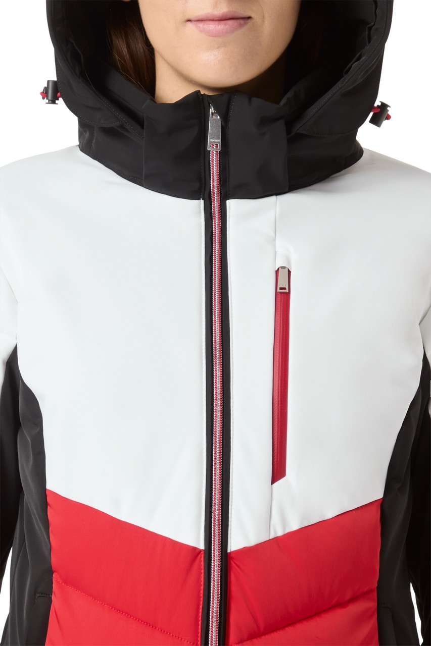 Na této elegantní sportovní bundě s logem na rukávech jsou atraktivní detaily vytvořené laserovou technologií D-Laser. Naprostou volnost pohybu zaručuje koncept Descente Motion 3D, který přesně kopíruje chování lidské kůže (stejně jako ona bunda nikde zbytečně neodstává ani netlačí). Svrchní materiál 4Way Stretch kontrastuje se Satin Stretch. Membrána Dermizax poskytuje dokonalou ochranu proti nepřízni počasí. Tepelný komfort zajišťuje 3M Thinsulate a materiál Heat Navi, který přeměňuje široké spektrum paprsků slunečního záření na teplo. Bunda disponuje i spoustou zajímavých prvků, které velmi usnadňují pobyt na zasněžených svazích, např. odepínací kapucí, boční ventilací, protisněhovým bederním pásem a dalšími.