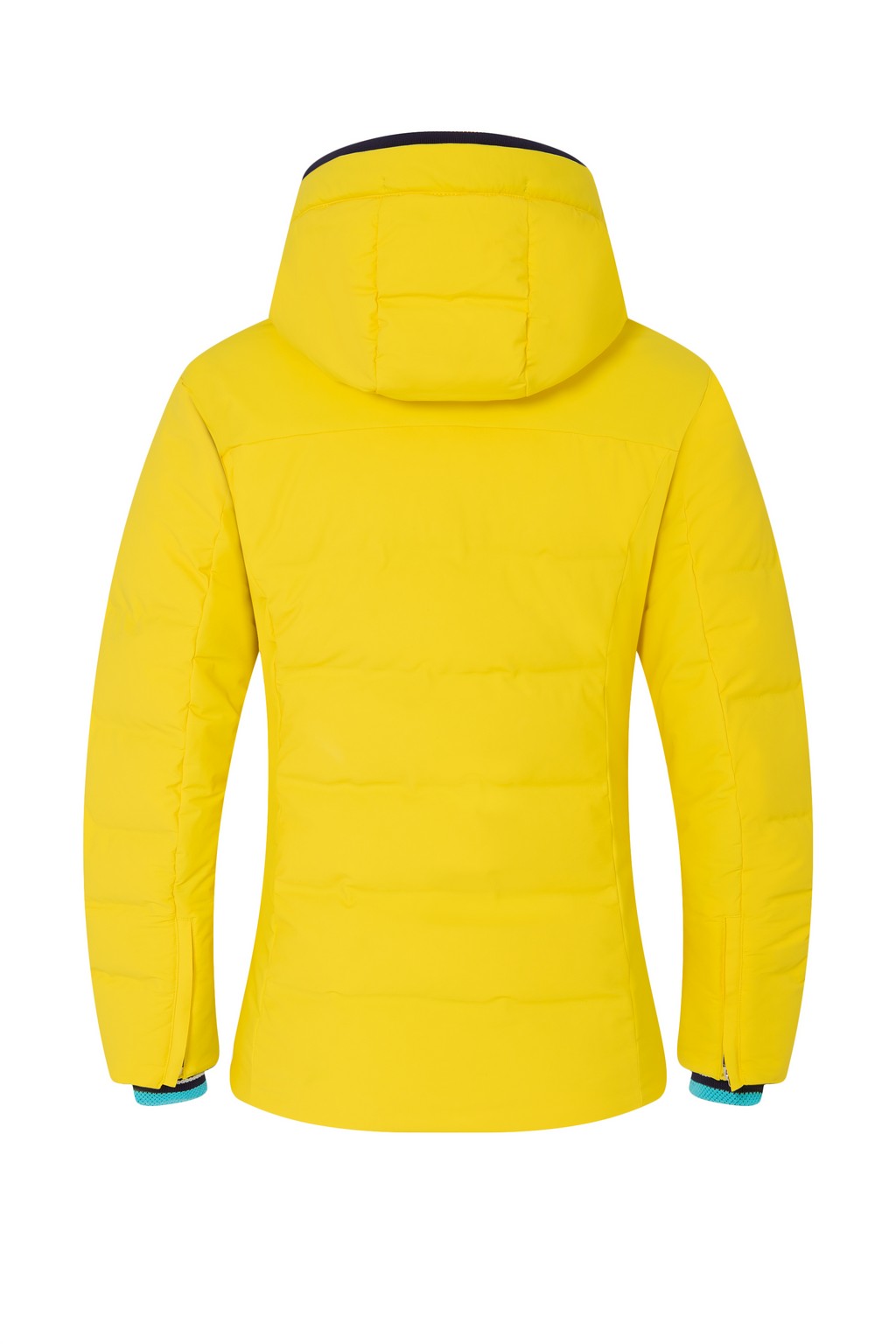 Jeden z Bestsellerů posledních let. Sportovně-elegantní lehká, péřová dámská bunda, která je vhodná nejen na lyžování, ale i na běžné nošení. Přední část bundy je o něco kratší než zadní, což je velice slušivé a umožňuje snadnější pohyb. Nevídanou volnost pohybu zaručuje koncept Descente Motion 3D, který přesně kopíruje chování lidské kůže (stejně jako ona bunda nikde zbytečně neodstává ani netlačí). Ochranu proti nepřízni počasí má na starost svrchní elastický materiál Lightweight Stretch s PU membránou DTL 20K/20K. Tepelný komfort zajišťuje termoizolační výplň z prachového peří a materiál Heat Navi, který přeměňuje široké spektrum paprsků slunečního záření na teplo. Bundě samozřejmě nechybí ani množství velmi praktických detailů, jako např. extra zateplené kapsy, zesílené náplety na krku a koncích rukávů a další.