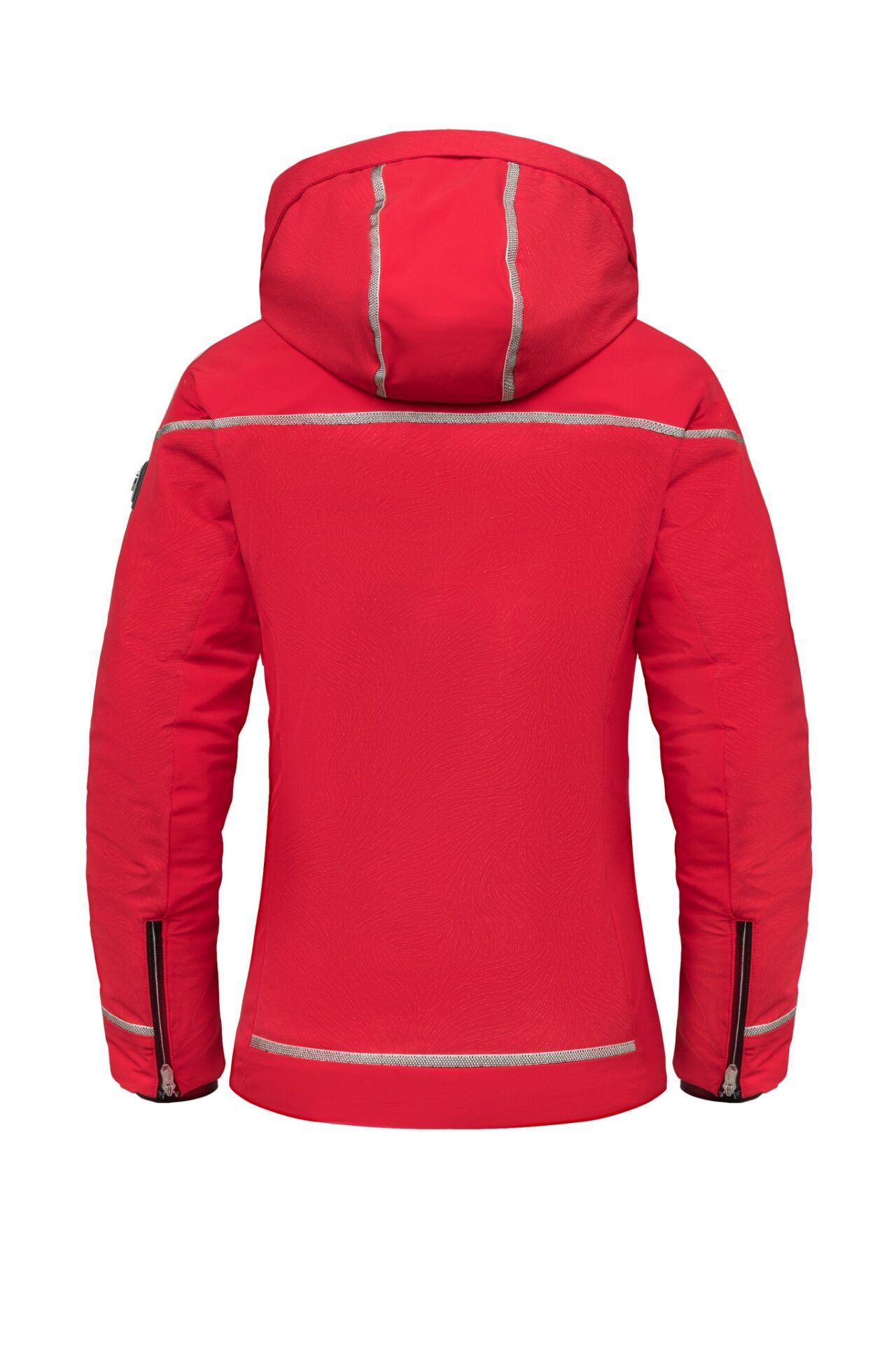 Elegantní dámská bunda v atraktivním designu doplněná o Swarovski krystaly. Luxusní vzhled dodávají metalické zipy, detaily vytvořené laserovou technologií D-Laser. Nádherný vzhled doplňuje do barvy bundy laděná kožešina z mývala. Volnost pohybu zaručuje koncept Descente Motion 3D, který přesně kopíruje chování lidské kůže (stejně jako ona bunda nikde zbytečně neodstává ani netlačí). Všesměrově elastický materiál 4Way Stretch s PU membránou DTL 20K/20K poskytují dokonalou ochranu proti nepřízni počasí. Tepelný komfort zajišťuje péřová výplň a materiál Heat Navi, který přeměňuje široké spektrum paprsků slunečního záření na teplo. Bundě samozřejmě nechybí ani množství velmi praktických detailů, jako např. velmi příjemný a teplý vniřní odnímatelný límec, obousměrný hlavní zip a další.