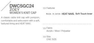 Teplá a velmi pohodlná dámská čepice s bambulí Descente v elegantním designu. Základním materiálem je vlna, kombinovaná s akrylem a technologií Heat Navi, který dokáže velmi efektivně přeměnit široké spektrum paprsků slunečního záření na teplo. Pro dosažení maximálního pohodlí čepice obsahuje vnitřní vložku z měkkého materiálu.