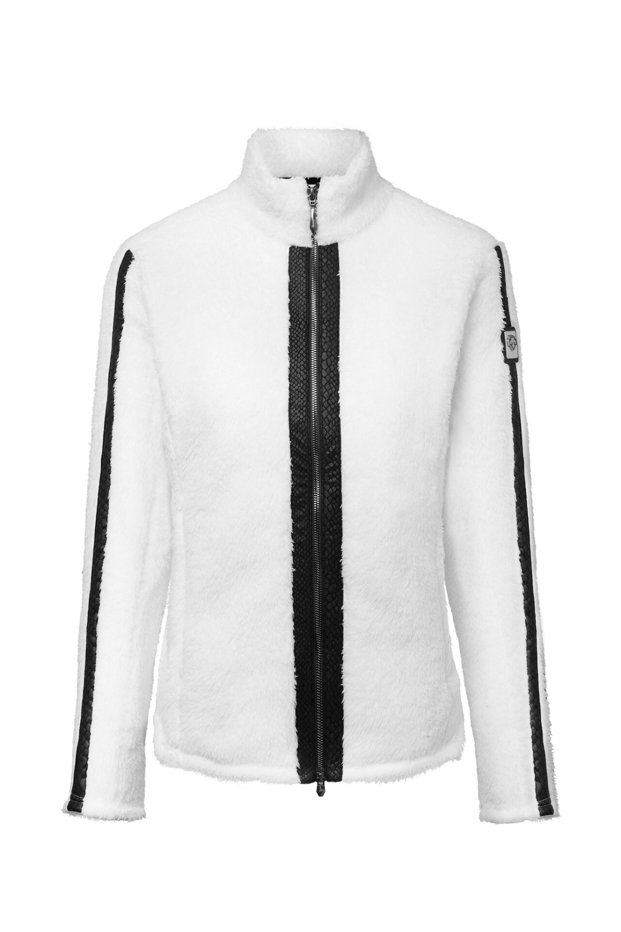 Velmi elegantní a funkční dámská celorozepínací mikina užšího střihu s „chlupatým“ vzhledem doplněna o látku Faux Leather Snake, která mikině dodává na luxusním a módním vzhledu.