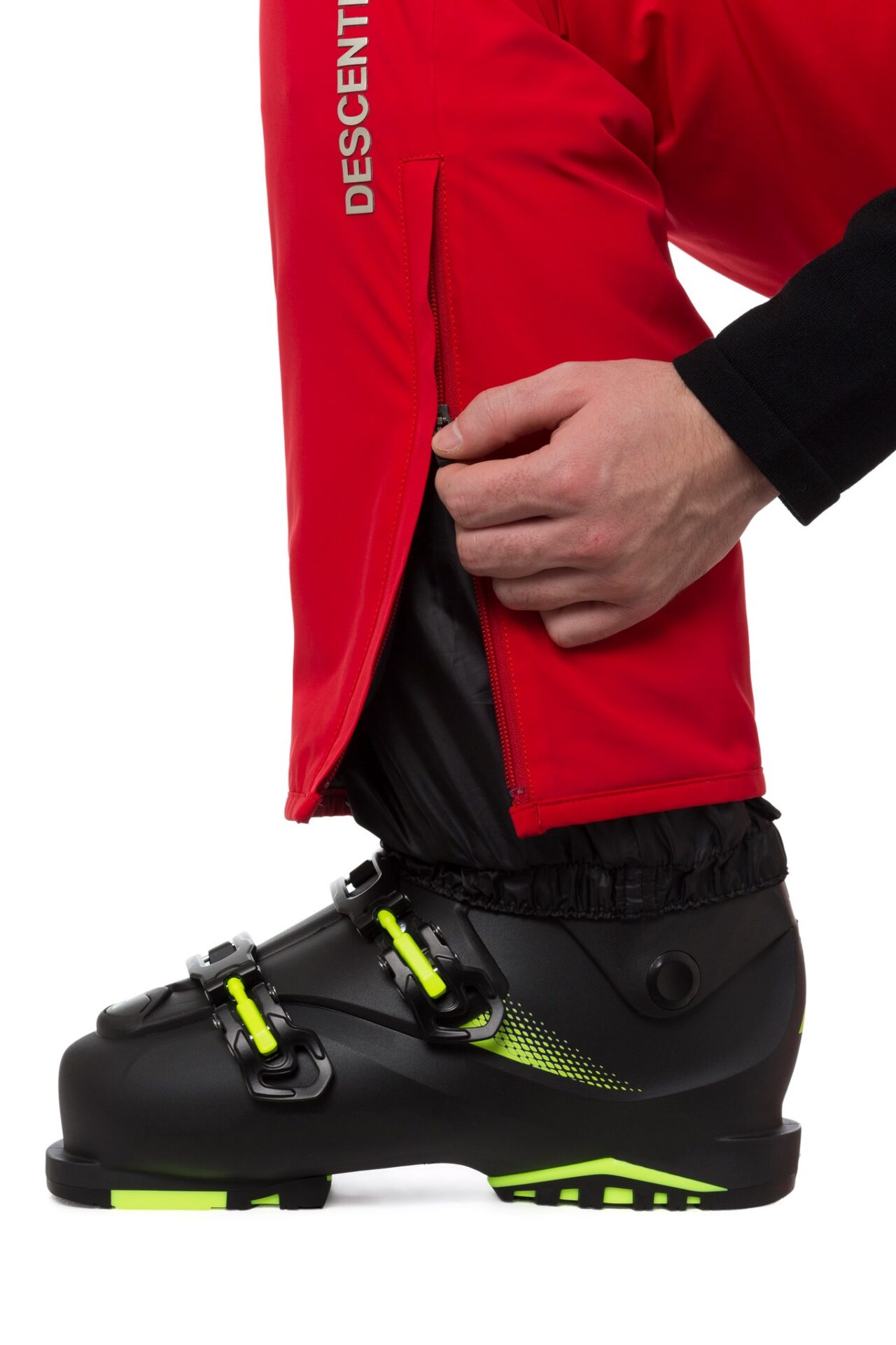 Kalhoty Swiss mají klasický pohodlný tvar body fit. V červené a černé barvě jsou v nabídce ve třech délkách: klasické-R (neuvádí se), prodloužené o 5 cm-L a zkrácené o 5 cm-S. Designově jsou sladěny s bundami z materiálu 4Way Stretch. Naprostou volnost pohybu zajišťuje všesměrově elastický svrchní materiál 4way Stretch s PU membránou Dermizax, doplněný o koncept Descente Motion 3D, který přesně kopíruje chování lidské kůže, stejně jako ona kalhoty nikde zbytečně neodstávají ani netlačí. O tepelný komfort pečuje termoizolační výplň Thinsulate a materiál Heat Navi, který dokáže velmi efektivně přeměnit široké spektrum paprsků slunečního záření na teplo. Samozřejmě nechybí funkční detaily, jako jsou odepínací šle, dvě zapínací kapsy, rozpínací spodní části nohavic opatřené 3D ochranou proti proseknutí hranou lyže, snadno ovladatelné stahování v pase a další.