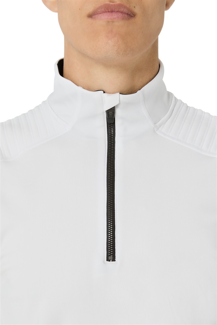 Sportovní pánský rolák se zipem u krku pohodlného střihu s vynikající termoregulační schopností. Prošívání vrchní části ramen zlehka navozuje retro styl. Použitý materiál Tricot Velour je všestranně elastický, velmi jemný na dotek, výborně přeměňuje vlhkost a rychle schne.