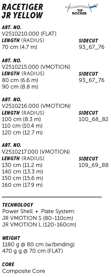 Juniorské (dětské) lyže na upravené svahy pro začínající lyžaře. Jejich předností je systém uchycení vázání vMotion Junior. Hlavním úkolem těchto lyží je umožnit snadné a rychlé osvojení lyžařských dovedností a přinášet z lyžování radost. Design věrně kopíruje dospělé lyže závodní řady Racetiger. Díky tvaru prohnutí Tip Rocker a uzpůsobené konstrukci s jádrem Composite Core (každá délka má uzpůsobenou flexi dle očekávané váhy lyžaře) jsou tyto lyže stabilní a zároveň velmi snadno ovladatelné.