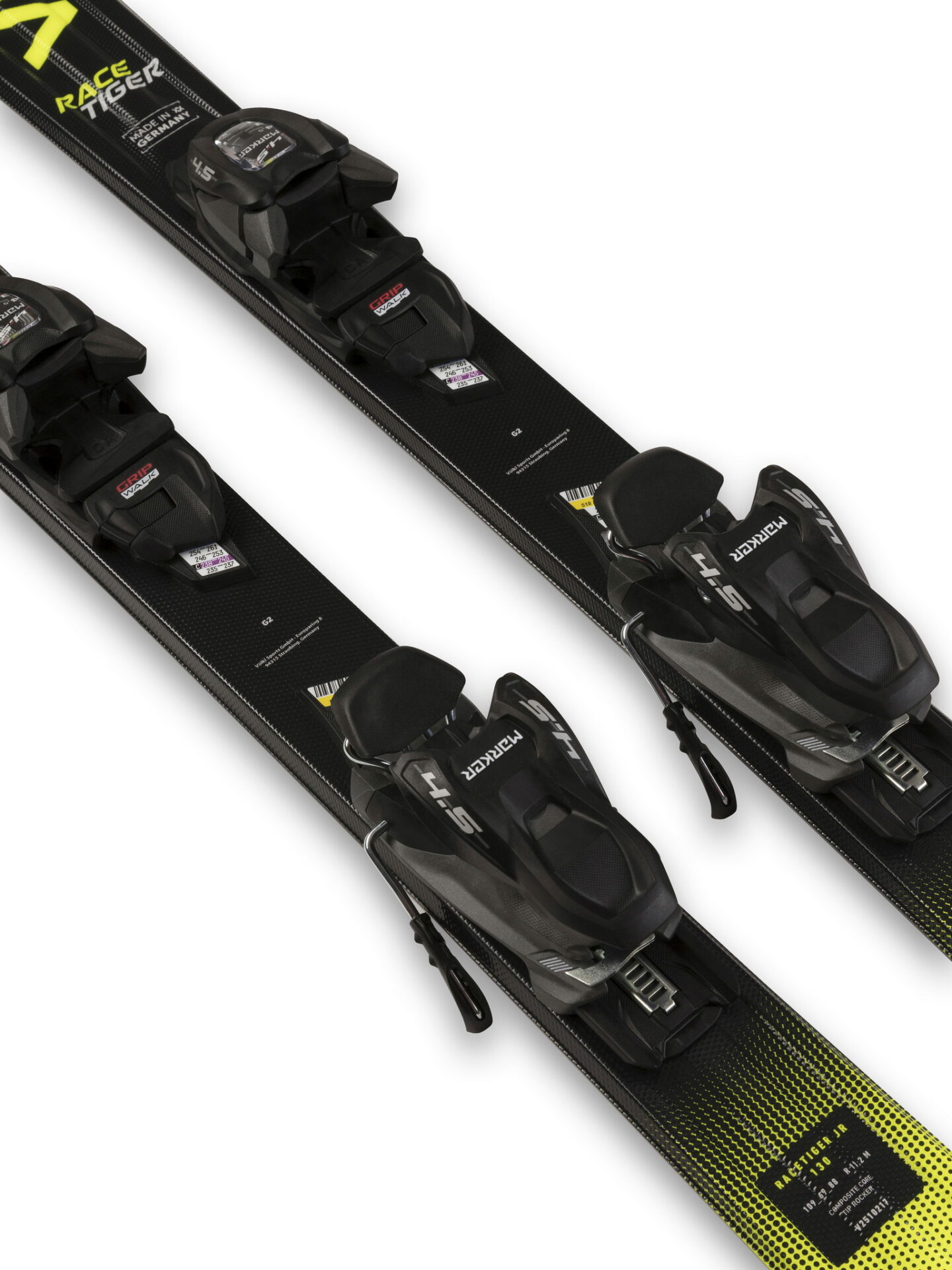Model Racetiger JR je dodáván s vázáním vMotion Junior. To umožňuje snadný a konstantní podélný průhyb lyže po celé její délce, čímž ohromně zjednodušuje ovládání lyží, tolik důležité pro začínající malé lyžaře. Navíc lze toto vázání velmi snadno přizpůsobit na různé velikosti bot. Vázání splňuje ta nejpřísnější bezpečnostní kritéria. Špička využívá technologii Biotech a kluznou podložku Active AFD, pata pracuje se systémem Compact Junior. Vázání je plně kompatibilní s podrážkami bot GripWalk Junior.