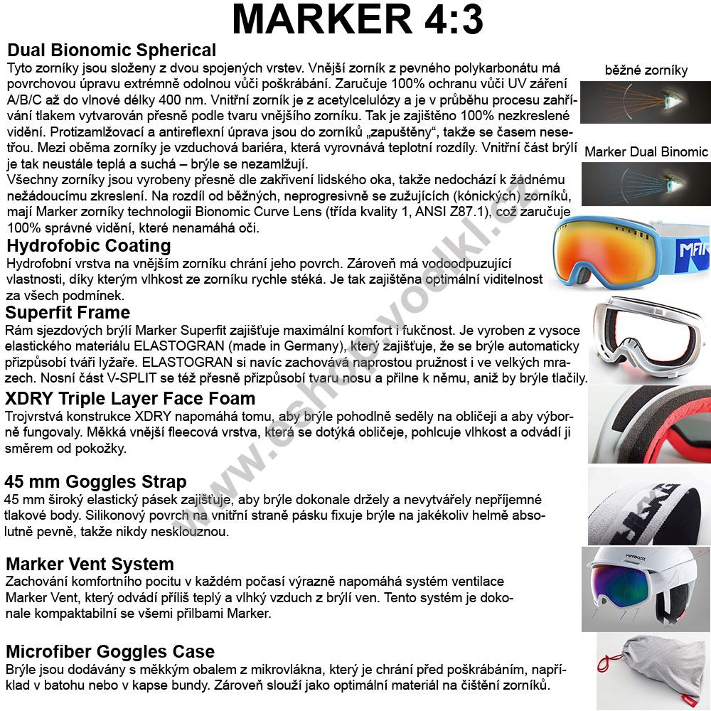 Zachování komfortního pocitu v každém počasí výrazně napomáhá systém ventilace Marker Vent, který odvádí příliš teplý a vlhký vzduch z brýlí ven. Tento systém je dokonale kompaktabilní s přilbami Marker.