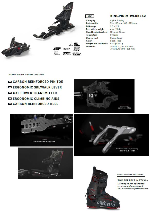 NOVINKA 2019 – Špičkové skitouringové vázání Marker M-WERKS, které díky své nízké váze a vysoké tuhosti najde uplatnění nejen při všech skitouringových aktivitách, ale i při freeridu.