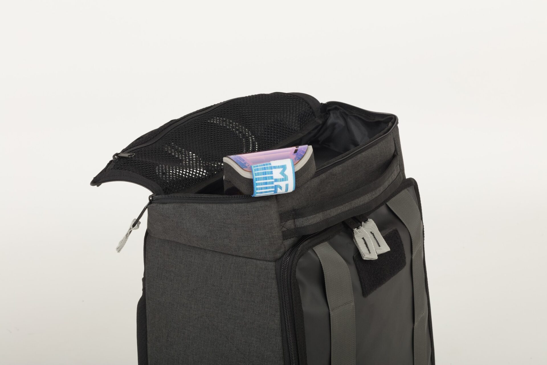 > Horní kapsa s integrovanou síťovanou kapsou pro bezpečný a rychlý přístup k základním věcem