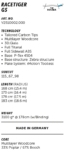 Model Racetiger GS je dodáván s deskou a inovovaným vázáním rMotion TL (toolless), které nově umožňuje možnost nastavení velikosti boty bez nářadí. Oproti minulé verzi má nyní větší tuhost a lepší přenos síly.