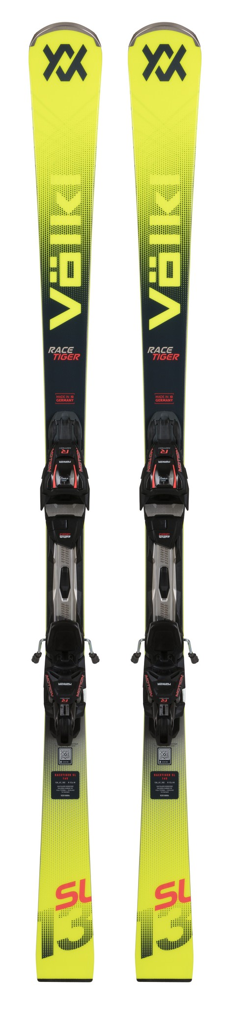 Model Racetiger SL má lehce přizvednutou špičku Tip Rocker pro snazší ovládání při nájezdu do oblouku a tlumení nežádoucích vibrací špiček pomocí karbonových výztuh Tailored Carbon Tip. Rychlost skluzu, a tím i lyží, zajišťuje použití vysokomolekulární závodní skluznice P-Tex 4504, spolu s úpravou boků Full Sidewall.